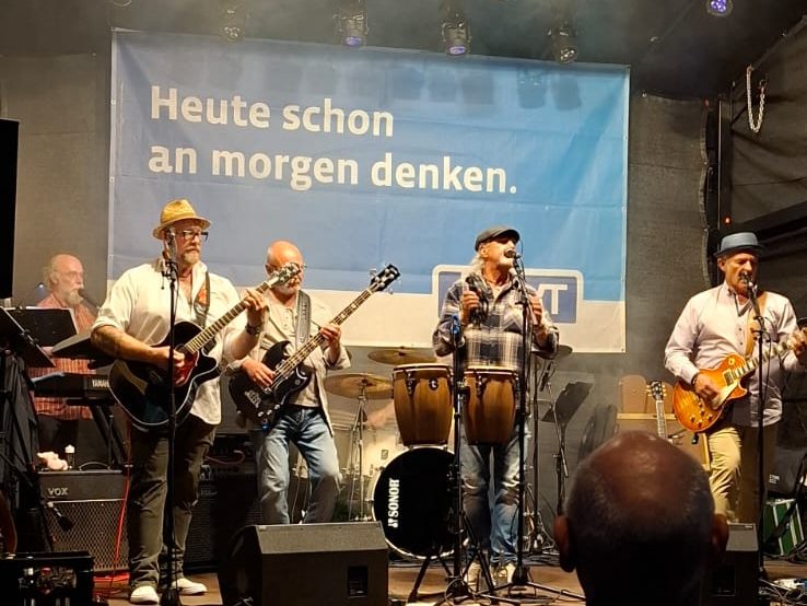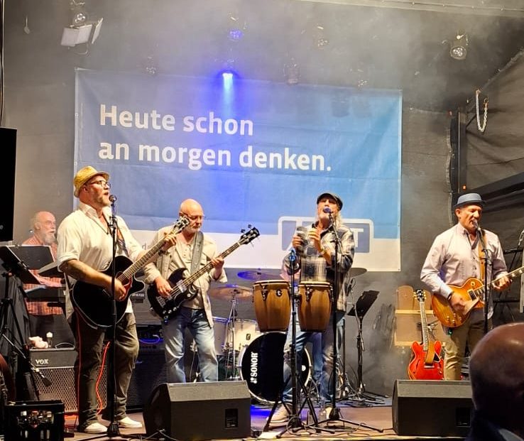Ein toller Abend beim Trierer Moselfest in Zurlauben. Es hatte das Flair von Woodstock, als die Leute ihre Picknickdecken ausbreiteten um unserer Band zuzuhören. Es hat Mega-Spaß gemacht, Trier zeigte sich von seiner besten Seite.